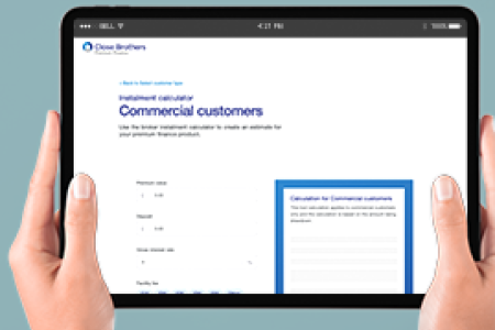 Click here to use our handy calculator that estimates monthly repayments for your clients, if they choose Close Brothers Premium Finance.